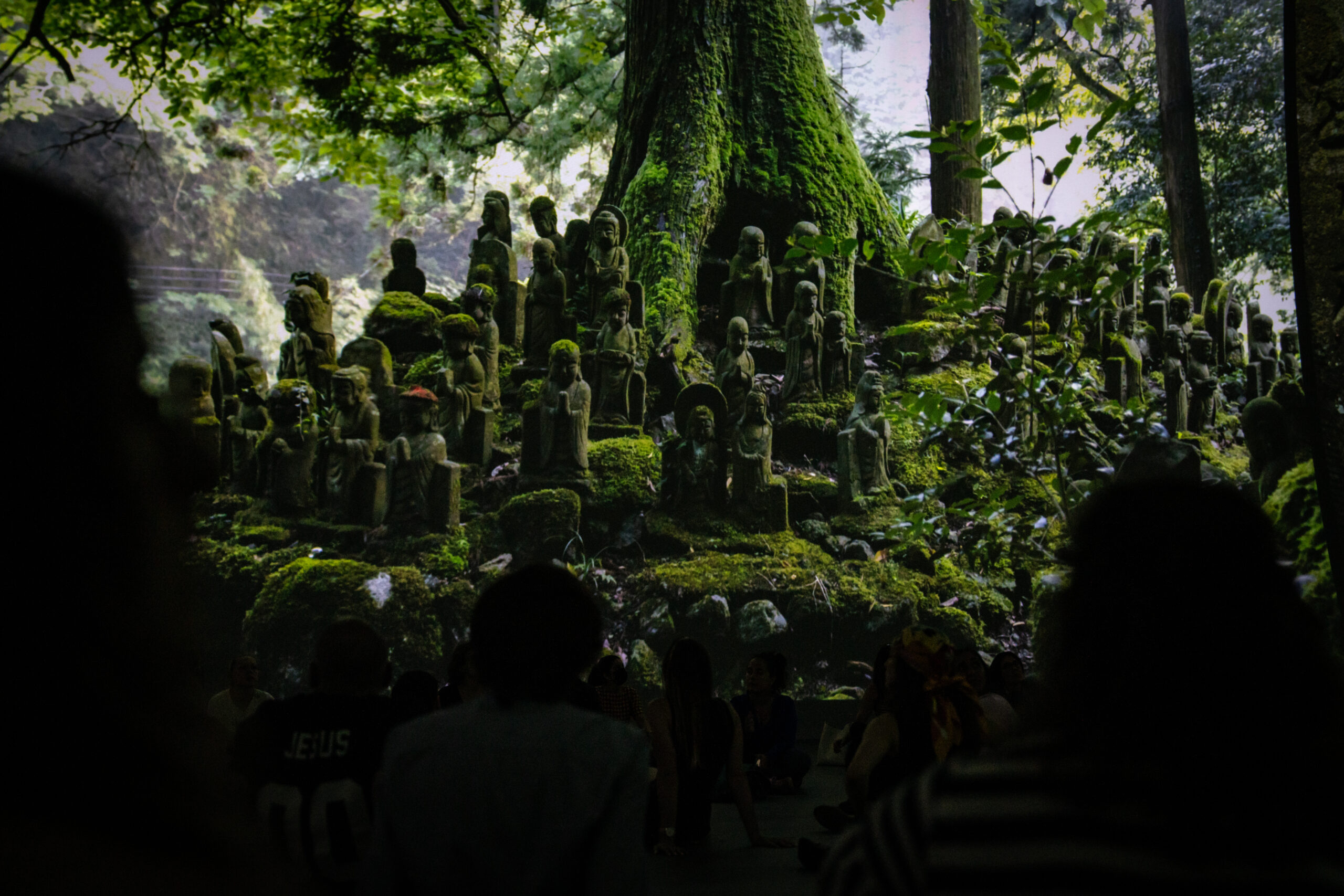 Une expérience visuelle et sonore qui plonge le spectateur au cœur du volcan du Mont Unzen mais aussi au côté du fondeur de sabre. Le visiteur partage l’expérience d’un plongeur sous un mètre de glace ou celle d’un producteur de wasabi. Il rencontre une très jeune karateka et accompagne une jeune maiko à sa première cérémonie de thé…